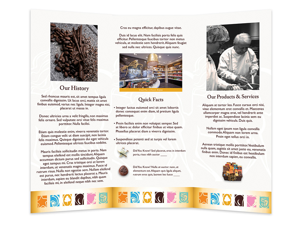 Icon, brochure and presentation deck template design assets I created for Godiva® Chocolatier, Inc.